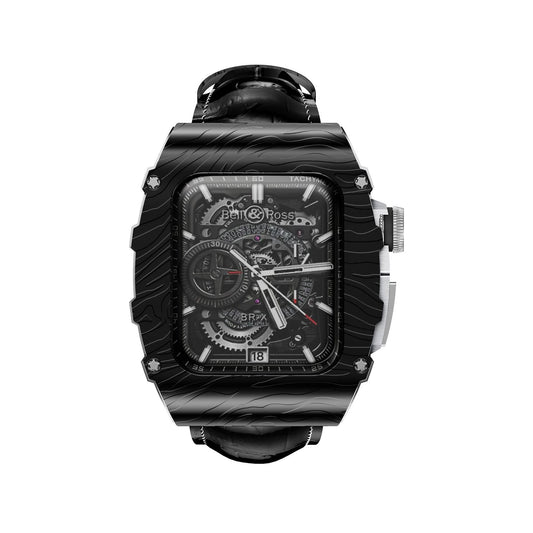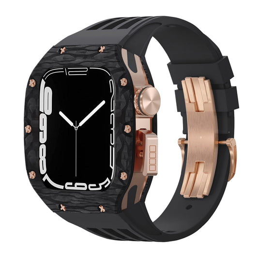 Luxurious Carbon Fiber Metal Case Strap For Apple Watch Series 44/45 mm