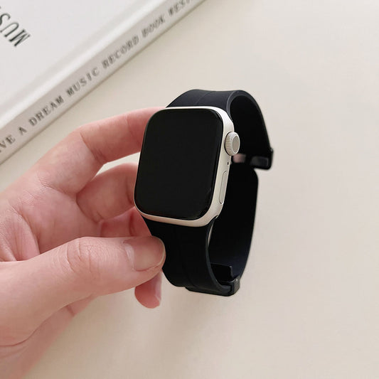 Magnetic Folding Buckle Silicone Watch Band With For Apple Watch