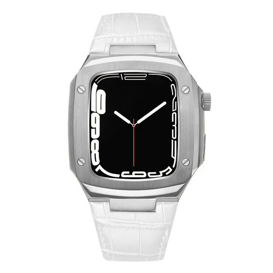 Luxury Metal Case Leather Strap For Apple Watch Series 40/41/44/45 mm