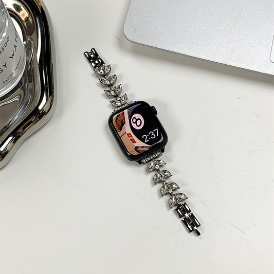 Stylish Shamrock Metal Rhinestones Band For Apple Watch